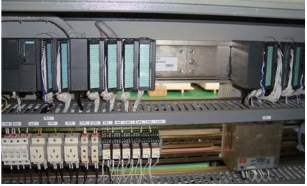 本系统采用AU7-300系列IO模块以及西门子S7-300系列CPU。通过Profibus网络实现主站和从站之间的通讯;中央控制室上位机与现场主机之间通过MPI网络通讯,对生产过程中的温度、传送速度、加热工艺等参数进行实时监控。